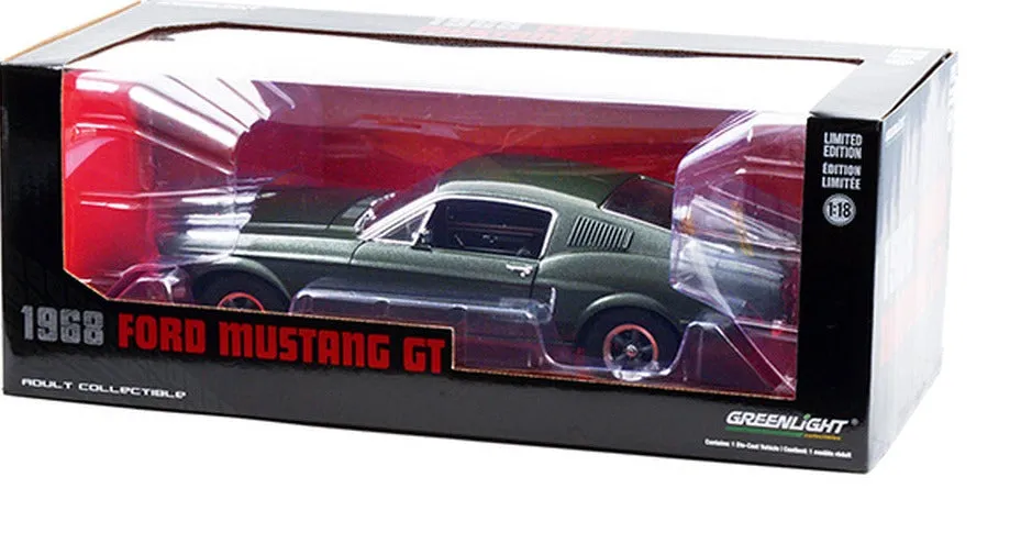 Scale: 1:18 - Make/Model : Ford Mustang GT Fastback - Year: 1968 - Details: Based off the movie Bullitt - Manufacturer: Greenlight