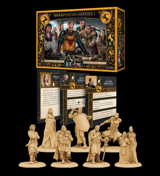 The Baratheon Heroes #1 box set gives House Baratheon players in the A Song of Ice and Fire: Tabletop Miniatures Game a host of options for when they field an army loyal to King Stannis. The box set contains seven new characters, including a new version of King Stannis himself. With four new options for army's Commander, players will be able to customize their forces to their liking. All the Stat and Tactics cards needed to play these devoted followers are included, so they can be used right out of the box.