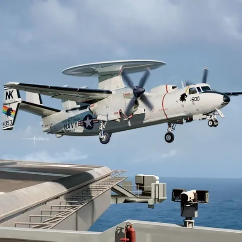 USN E-2C VAW-113 "Black Eagles". _x000D__x000D_ Markings for 3 aircraft: (1) E-2C of VAW-113 "Black Eagles" 164353/NK600, USS Carl Vinson 1993; (2) E-2C of VAW-126 "Seahawks" 162616/AC600, USS Enterprise 1999; (3) E-2C of Airborne Early Warning Surveillance Group, JASDF 2021. _x000D__x000D_ 1:144 scale plastic model kit from Academy, requires paint and glue.