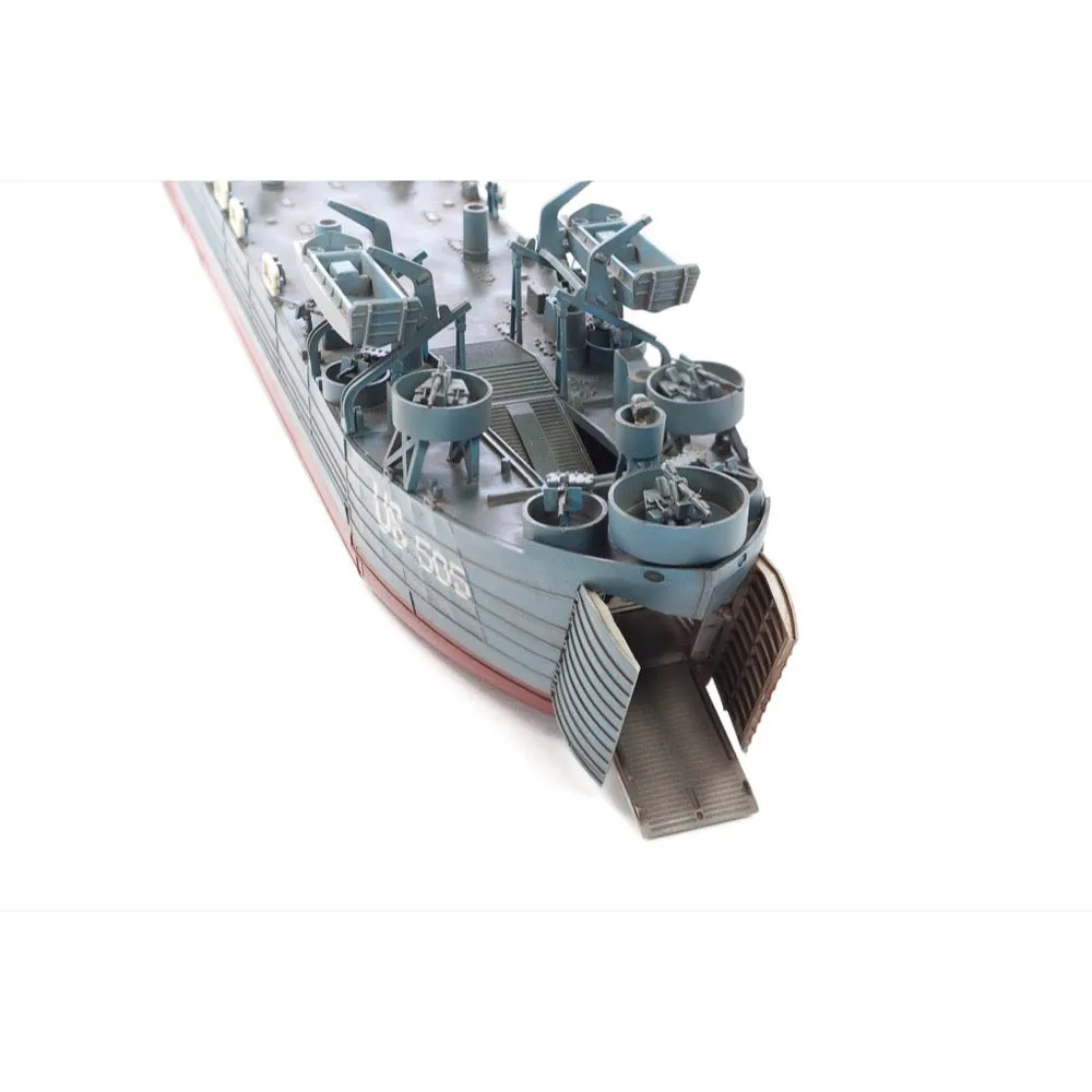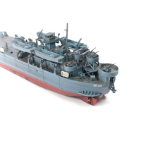 Features - Newly-tooled bow foredeck section. - Newly-tooled vehicle ramp connecting the main deck and third deck. - The ramp can be positioned in closed or lowered position. - Three variants of newly-tooled bridges to choose from. - All AA guns can be positioned in horizontal or anti-aircraft position. - Decals for 6 different LST-491 class boats included. - The bow outer doors can be positioned open or closed. - Highly-detailed tank and vehicle deck. - Highly-detailed Higgins Boats and Welin davits system.