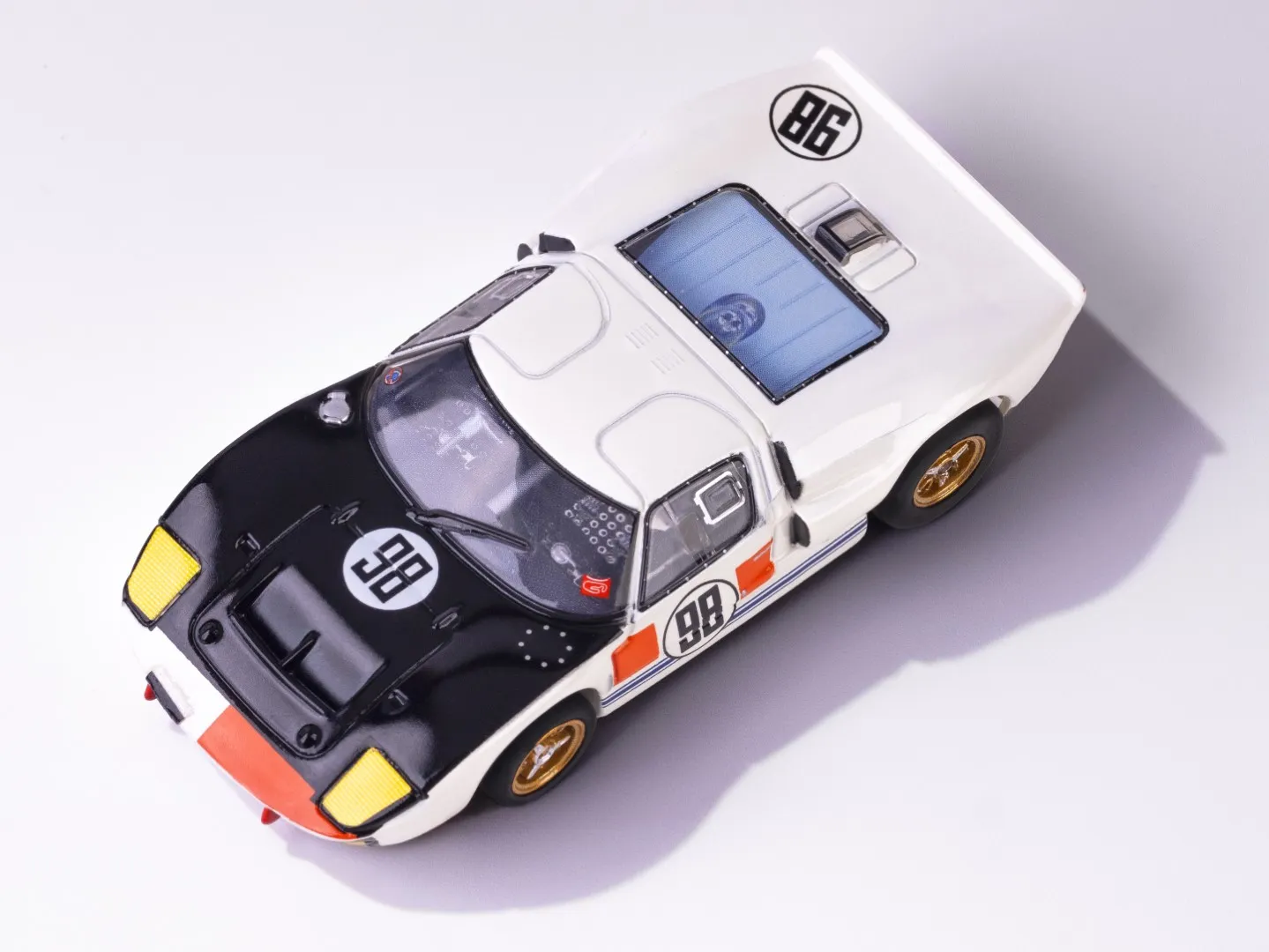 As with every AFX recreation, attention has been paid to the finest details. Gold Halibrand Wheels, asymmetrical livery, and red R taped to the grill the same as the day Ken Miles and Lloyd Ruby Drove the GT40 MkIIB #98 to victory at the Daytona 24-Hour race. Don’t miss this one-of-a-kind HO scale tribute to the artistry and power of this iconic car and legendary team.