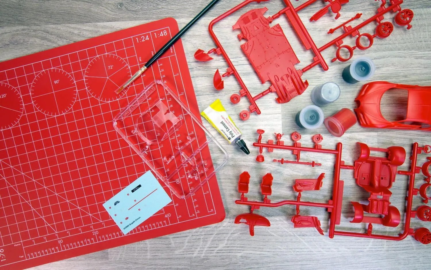 | Contents (what's in the box) sets | Sprues, decals, paints, glue & brush |