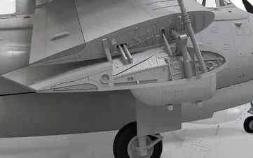 Another unique feature of the Gannet's design was its bi-folding wing system, something which was designed to allow this large aircraft to operate safely and to be stored aboard one of the Royal Navy's relatively small aircraft carriers. When a pilot engaged the wing unfold, this ingenious system not only prepared the wings for flight, but also automatically connected all flight control systems, hydraulic connections and fuel pipes to the main system, without any ground crew intervention.
