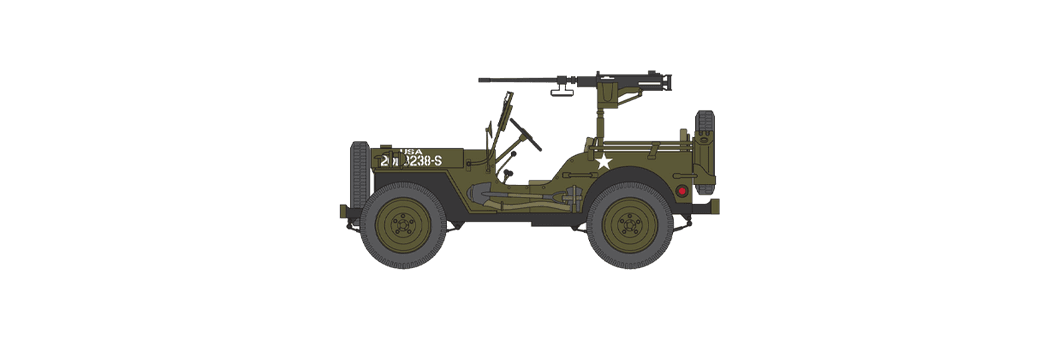 The Willys Jeep, officially designated Truck, 1/2 ton, 4x4, is the best known of all the American vehicles of the Second World War. Originally intended to be a command and reconnaissance car, it became the most versatile of all vehicles. Able to be armed with machine guns and to tow small artillery pieces, the Jeep was essential to the Allied war effort.