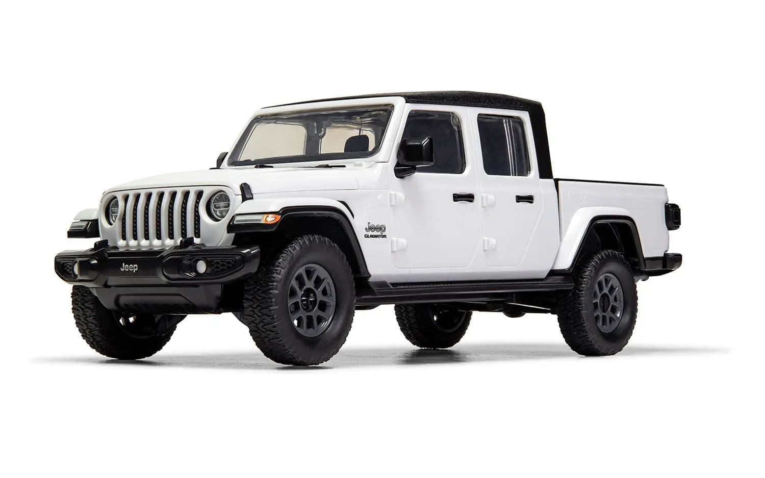 Quickbuild allows you to create a wide variety of iconic scale models. No paint or glue is required, the push together brick system results in in a realistic, scale model that is compatible with other plastic brick brands. Suitable as an introduction to modelling for any age of 6 and up, the pre coloured pieces simply push together to build an impressive model which can then be decorated with the included self-adhesive stickers. When built they are tough enough to be used as toys, or smart enough to use as display models.The Jeep Gladiator is Jeep’s first pickup truck since the Comanche was discontinued in 1992. The four door, five passenger Gladiator features exterior and interior styling like the Wrangler JL. Due to a truck frequently being used for hauling and towing, the front grille slots were enlarged to allow for improved airflow and engine cooling. The truck has front and rear doors that can be fully removed, as well as a windshield that can be lowered. The Gladiator is unique in that it is the only truck available with a convertible folding soft top.