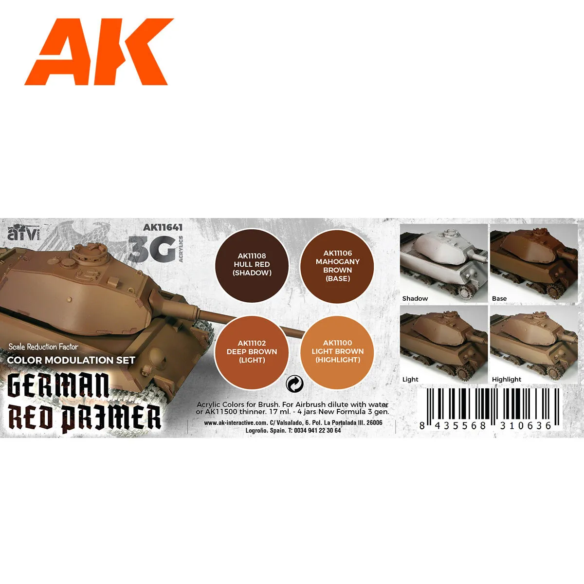 AK Interactive AFV Series: Modulation German Red Primer Acrylic Paint Set 3rd Generation