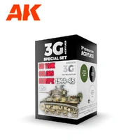 A special set of 3rd Generation acrylic paints including the three basic camouflage colors used for painting German army vehicles in the 1937-43 period.