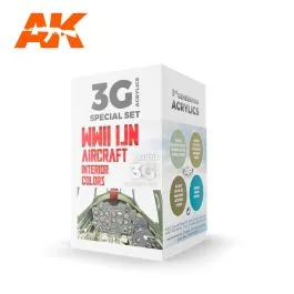 This set contains: AK11135 IJN M0/M1 Cockpit Interior Color (Faded Green) AK11896 IJN M3 (M) Mitsubishi Interior Green AK11897 IJN M3 (N) Nakajima Interior Green AK11898 IJN/IJA Aotake *A model aircraft reflects less light than an actual full-size aircraft; this means the colour applied to the model must be of a lighter shade to look the same as the full-sized version. If the same colour tones were applied to each, the model would appear darker as it reflects less light.