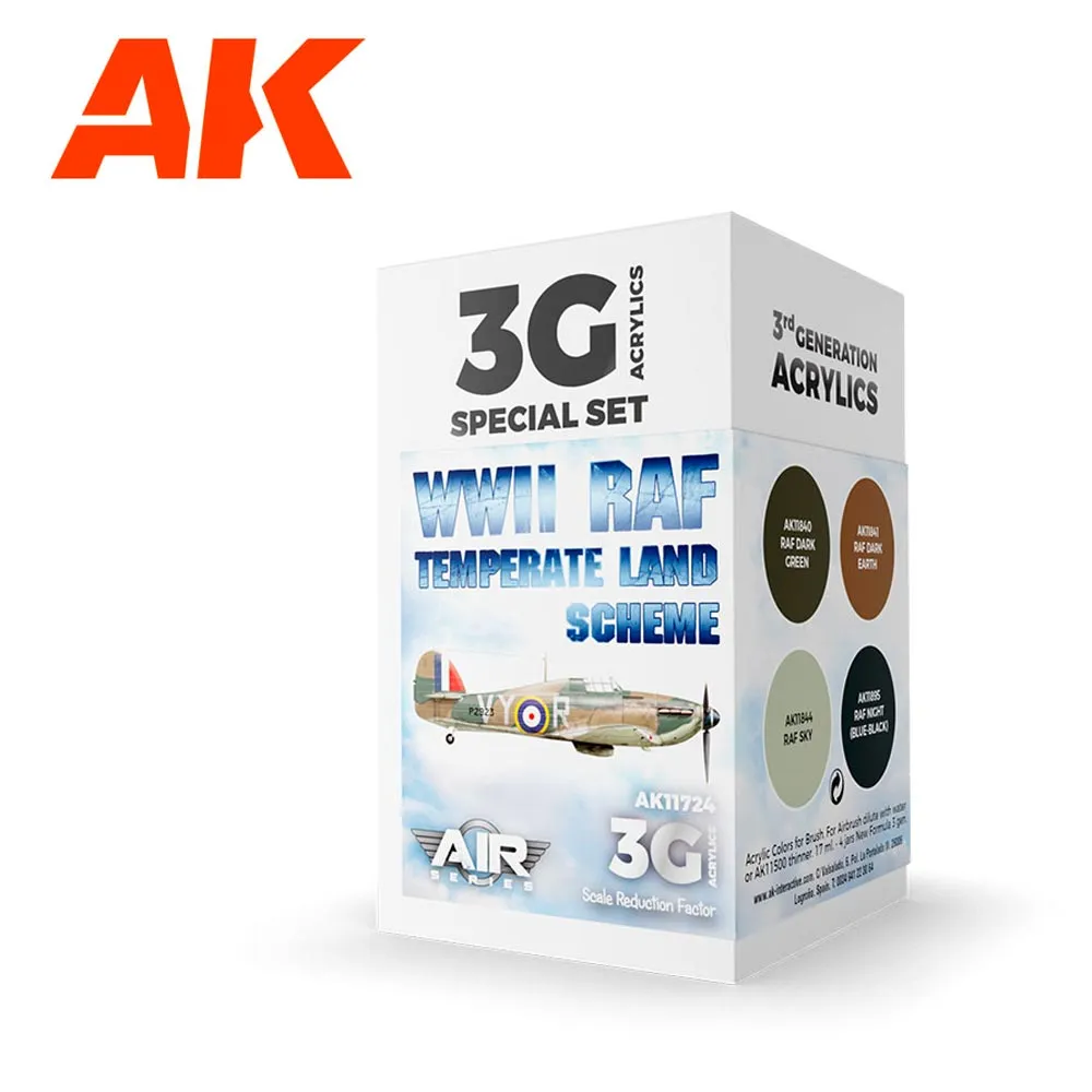 AK Interactive Air Series: WWII RAF Temperate Land Scheme Acrylic Paint Set 3rd Generation