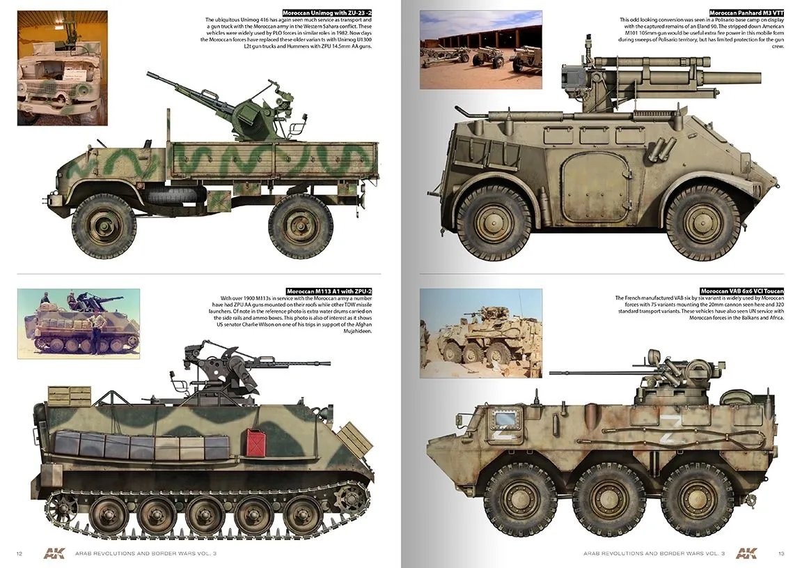 New profile book. Whether you like Arab vehicles, you make models or not, you should take a look at this super-book with lots of inspirational profiles, with information, anecdotes, etc. You can buy this book as a sole volume or to complete the collection with other volumes of the Arab Wars. This book covers the vehicles from last 30 years in different armies. Regular Arab Armies as Moroccan Army, Algerian Army, Lybian Army, Sudan Army and SLPA Vehicles, Egyptian Modern Army, Syrian Army, Iraq Army, Yemen Army,Turkey Army and the interesting and rare vehicles from Arab Rebel Armies as Peshmerga Vehicles, Kurds Vehicles, Daesh Vehicles and other surprises.
