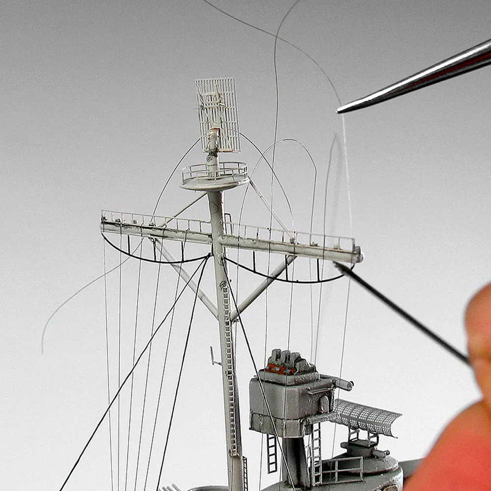 The elastic thread is a suitable material in modeling to make any type of ultrarealistic bracing in airplanes, boats, antenna fastening, Sci-fi, dioramas, etc.