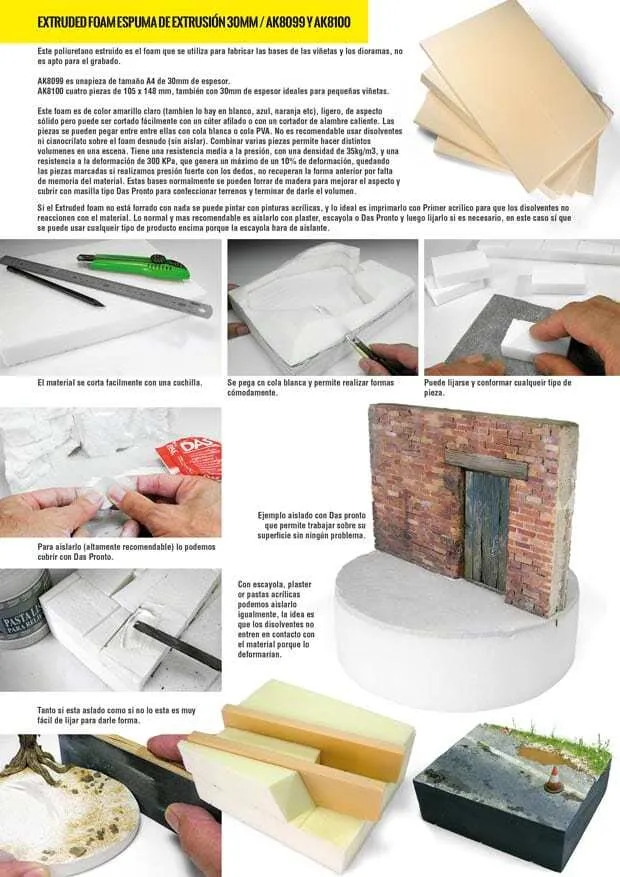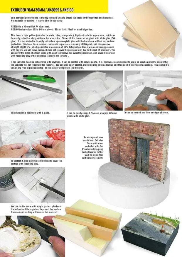 Extruded foam is the best material for the base of your diorama or vignette. Its surface and overall shape can be easily adapted to your requirements, although it is not really suitable for carving. Now you don’t have to buy and store extra-large pieces, as we bring you this foam in reasonably- sized pieces that will suit most modelers’ needs.