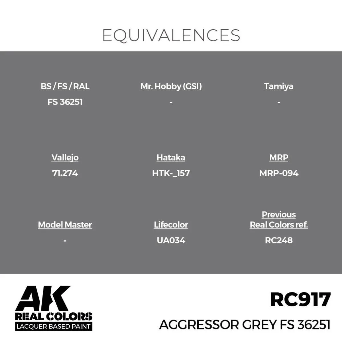AK Interactive Real Colors: Aggressor Grey FS 36251 - 17ml Lacquer Paint