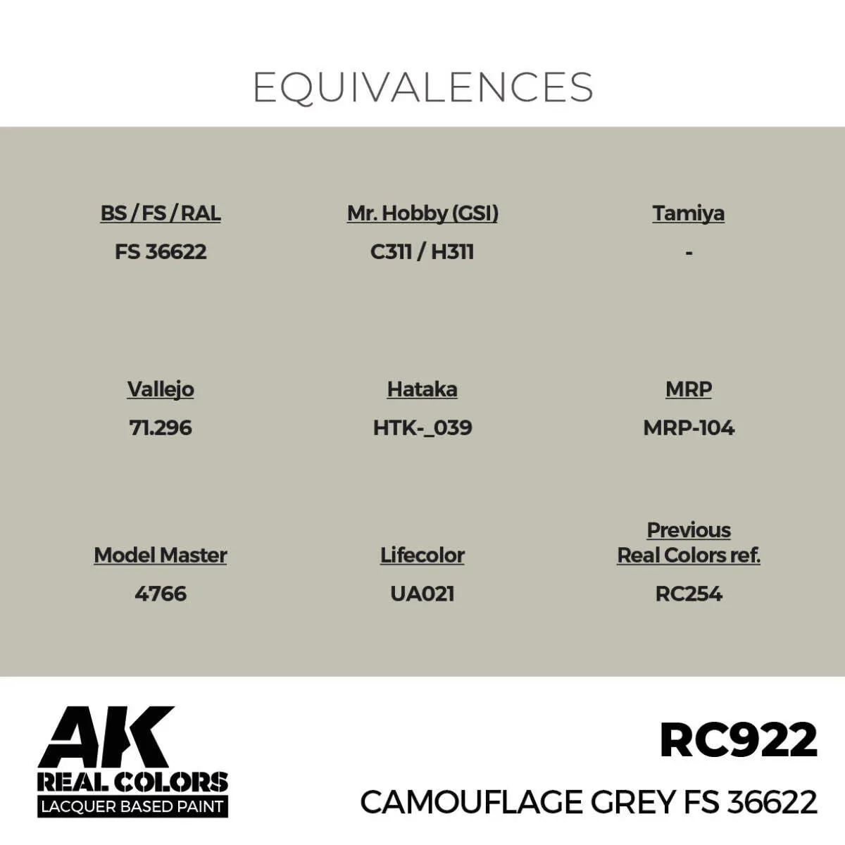 AK Interactive Real Colors: Camouflage Grey FS 36622 - 17ml Lacquer Paint