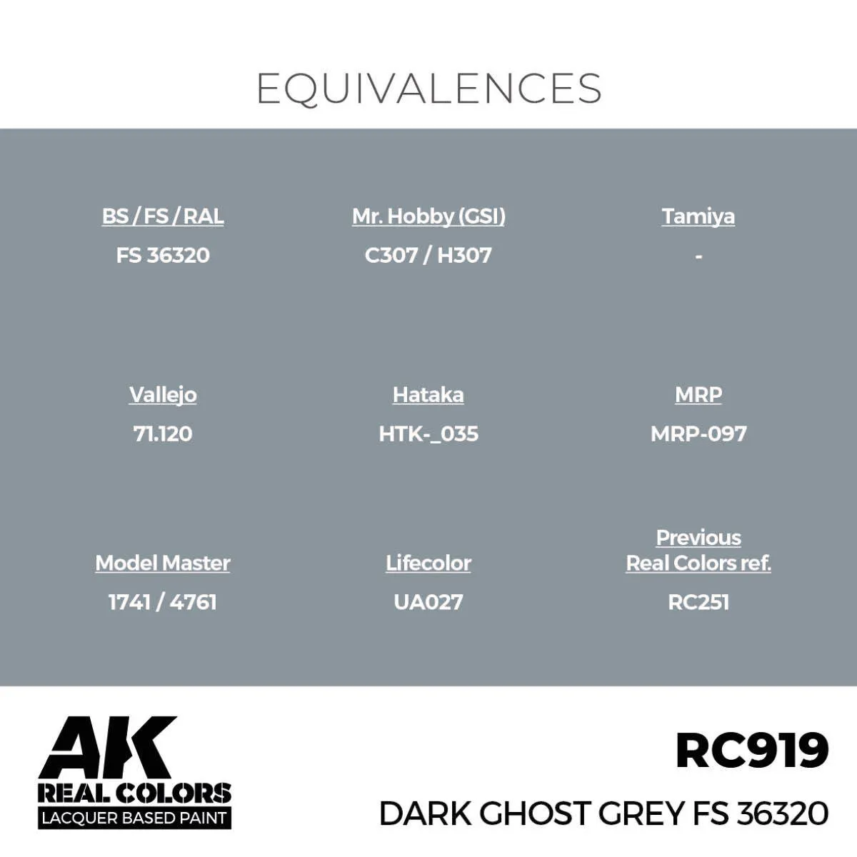 AK Interactive Real Colors: Dark Ghost Grey FS 36320 - 17ml Lacquer Paint