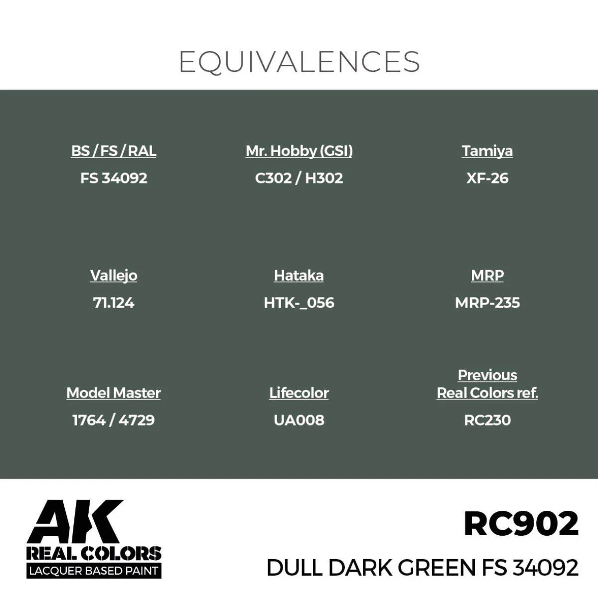 AK Interactive Real Colors: Dull Dark Green FS 34092 - 17ml Lacquer Paint