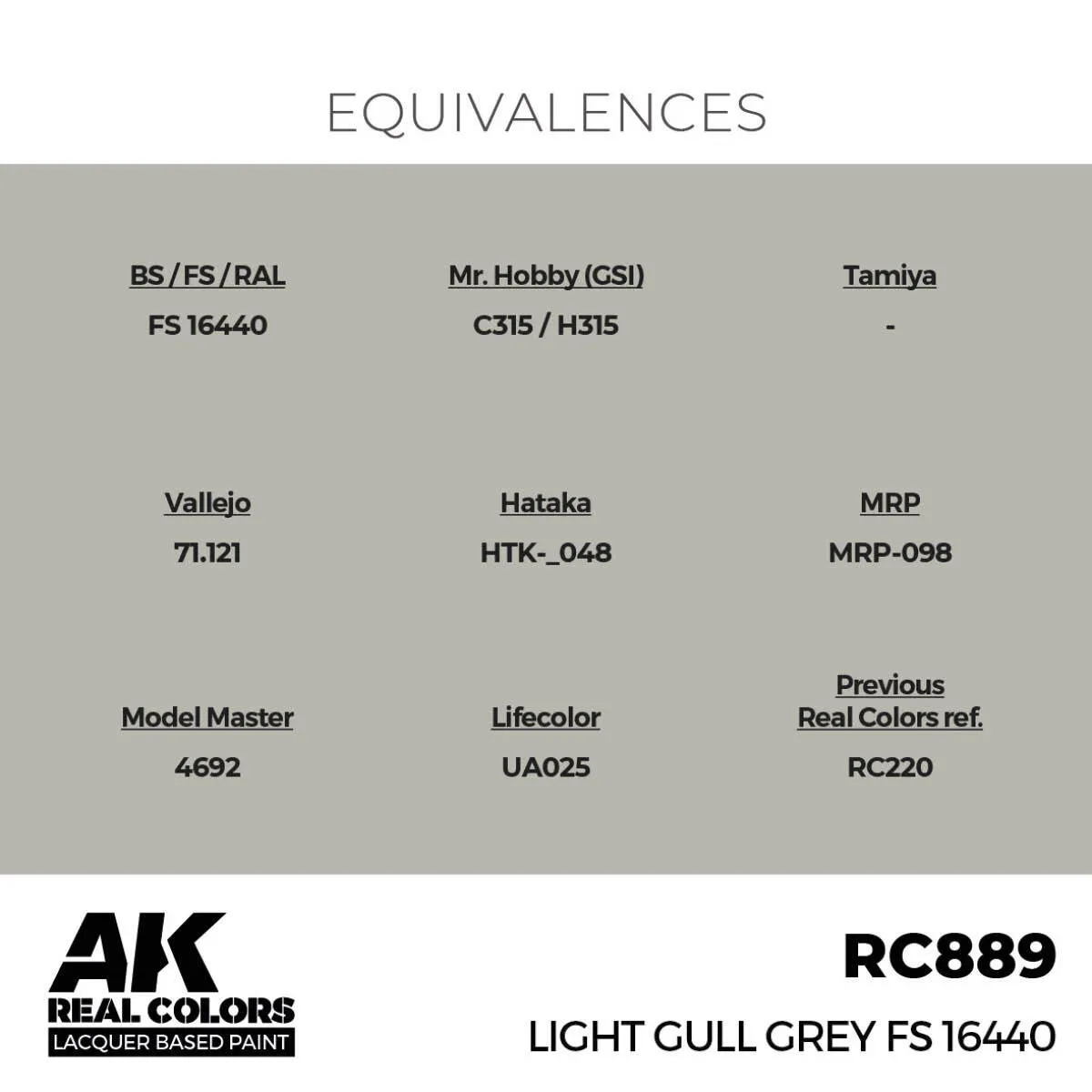 AK Interactive Real Colors: Light Gull Grey FS 16440 - 17ml Lacquer Paint