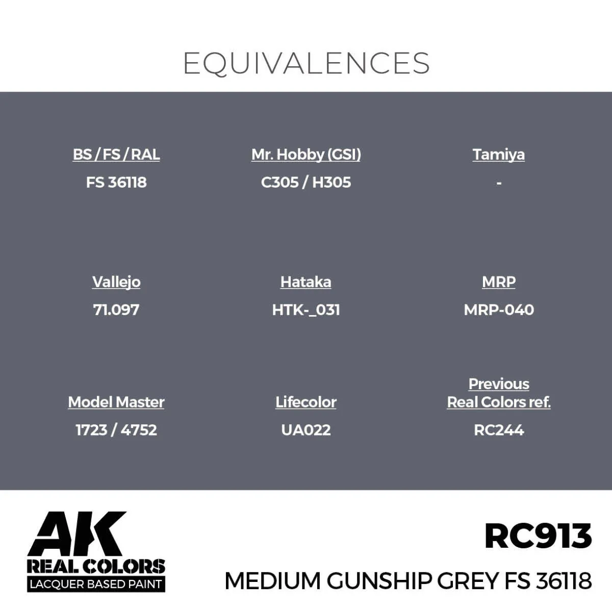 AK Interactive Real Colors: Medium Gunship Grey FS 36118 - 17ml Lacquer Paint