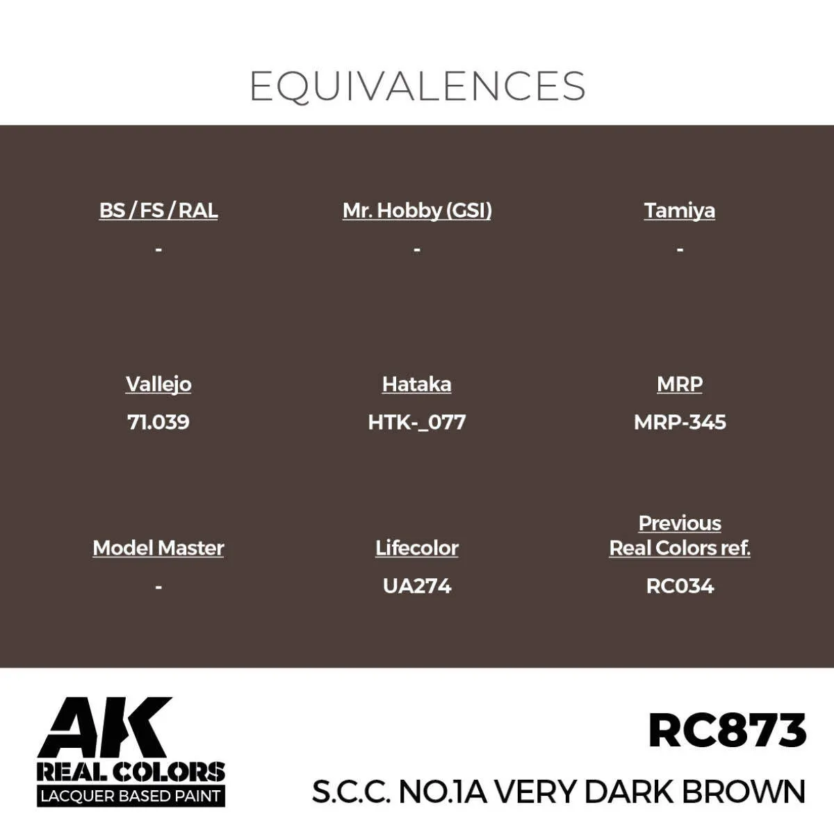 AK Interactive Real Colors: S.C.C. No.1A Very Dark Brown - 17ml Lacquer Paint