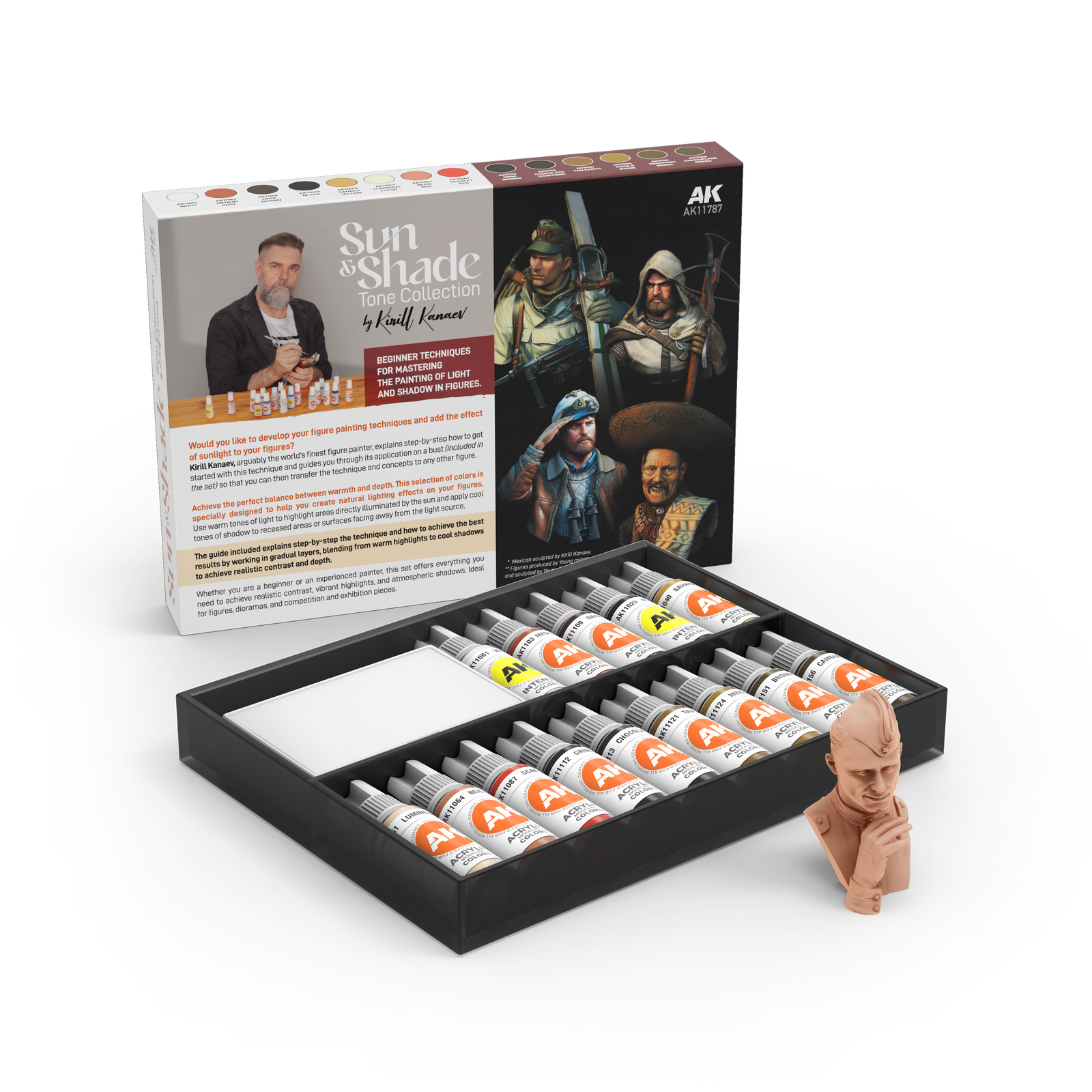 Kirill Kanaev, arguably the world's finest figure painter, explains step-by-step how to get started with this technique and guides you through its application on a bust (included in the set) so that you can then transfer the technique and concepts to any other figure.