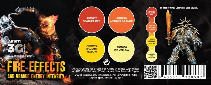 This Third Generation set contains a selection of colors to paint fire effects on figures and scenes. It includes 4 tones to combine easily for making realistic fire effects.