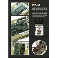 This product allow us bring life to the details of the interior of our tanks. This wash is specially designed to be applied over the light colors of the interiors, such as RAL 9001 Cremeweiss or white. For this reason we can also use it on winter camouflaged vehicles. Ideal wash for creating the accumulation of dirt and grime on details on light colors.