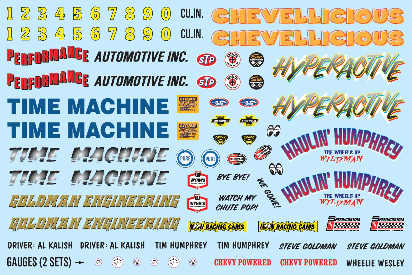 Unlike the original kit which had plastic tires, the new version features black vinyl tires including pad-printed drag slicks. The kit is fully paintable and includes an expanded water-slide decal sheet that allows you to customize the engine size call out for whichever size you want it to represent.