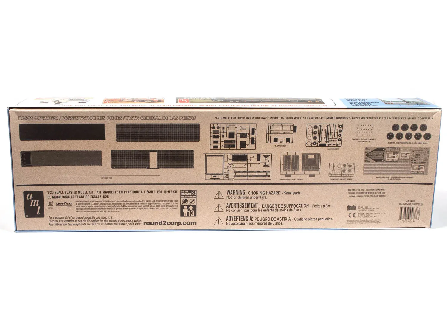 BIG ON DETAIL: Loaded with authentic details, the Great Dane Reefer Trailer includes: detailed reefer unit, movable select-a-point tandem sliding suspension, support assembly with optional sand shoes and wheels, functional rear and side doors, dual wheels with plated rings and more! Fully paintable, with enormous water-slide decal sheet and vintage-style packaging which will WOW your friends!