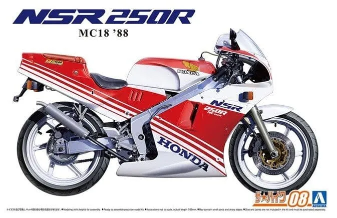 This is a Aoshima 1/12 Honda MC18 NSR250R 1988 Plastic Model Kit Fuel your passion for motorcycles with the Aoshima 1/12 Honda MC18 NSR250R 1988 Plastic Model Kit.