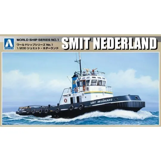 SKU: A005343 | Brand: Aoshima | Product: Aoshima 1/200 Tag Boat Smit Nederland Plastic Model Kit Injection-molded ship model kit from the World Ship No.1 series. Features full-hull construction with white and black plastic components and included decal sheet. Manufactured by Aoshima. Scale: 1/200. Dimensions: 30.5 x 17.8 x 5.4 cm.