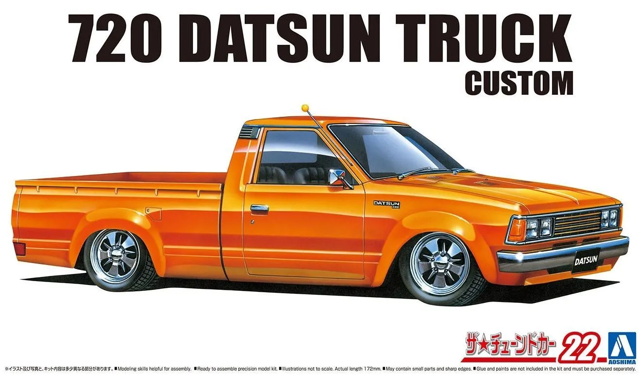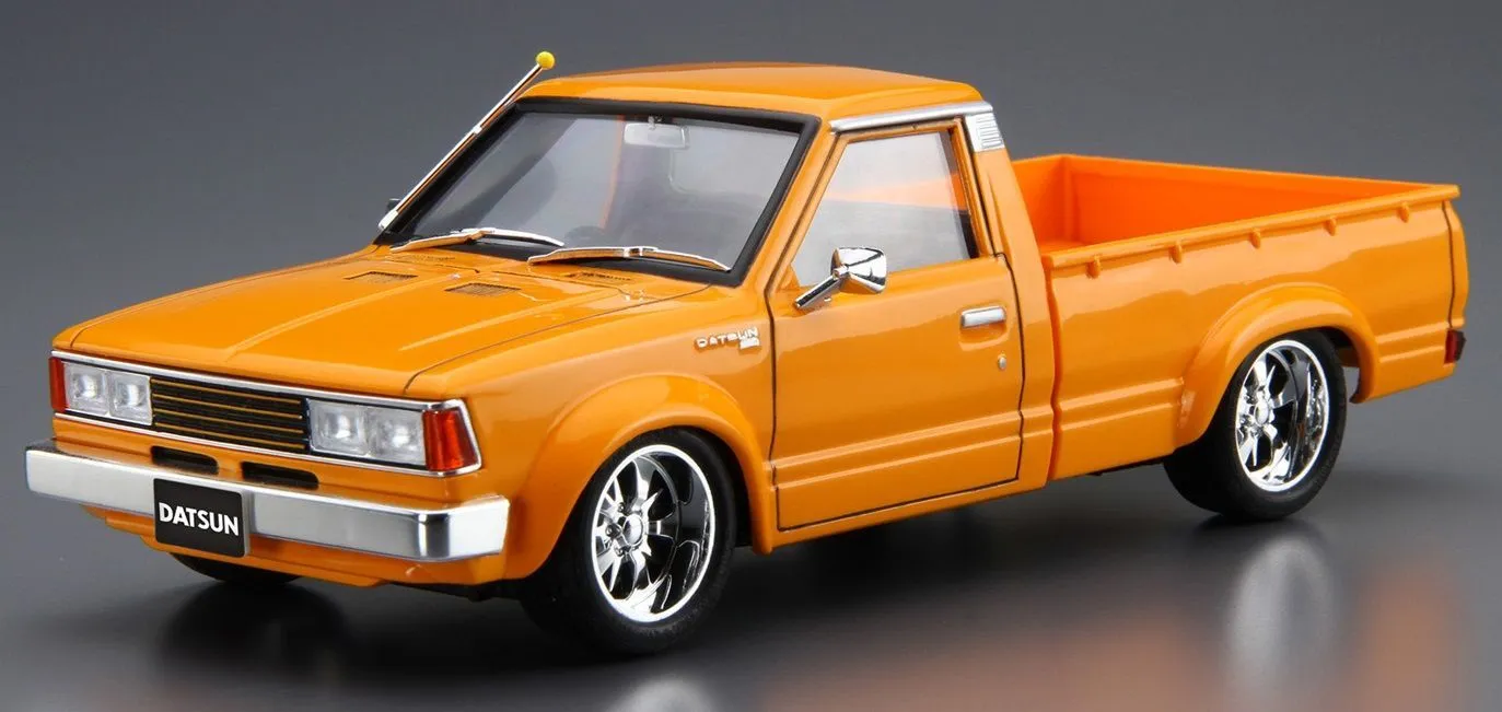 Get on that old school vibe with this slammed1/24 scale model of the 720 Datsun truck.