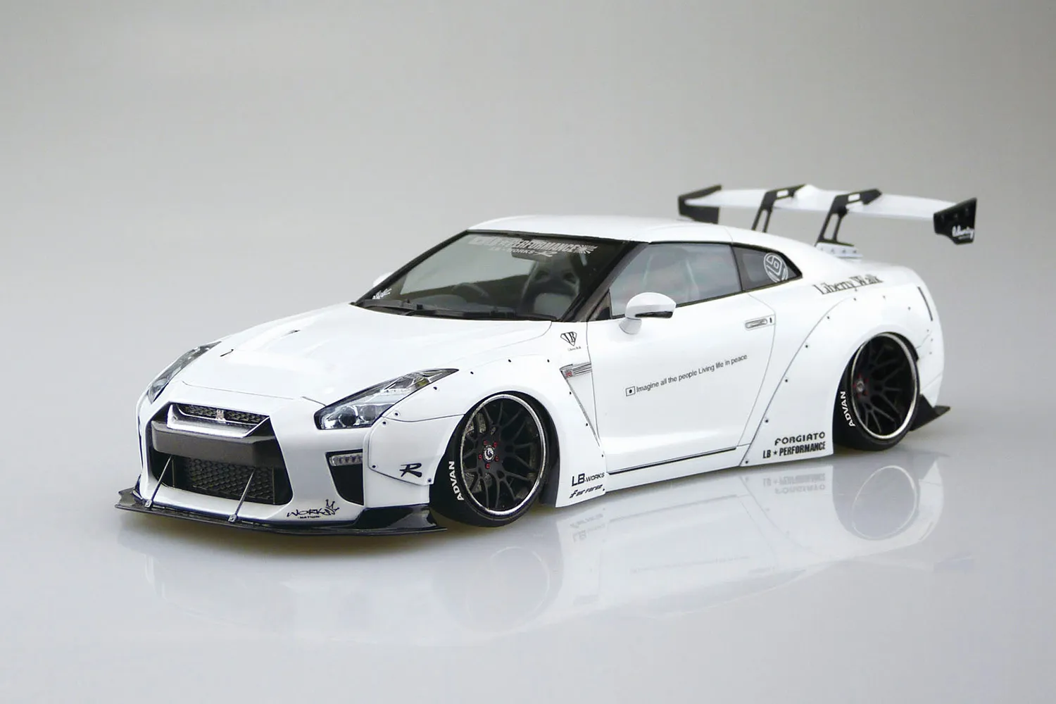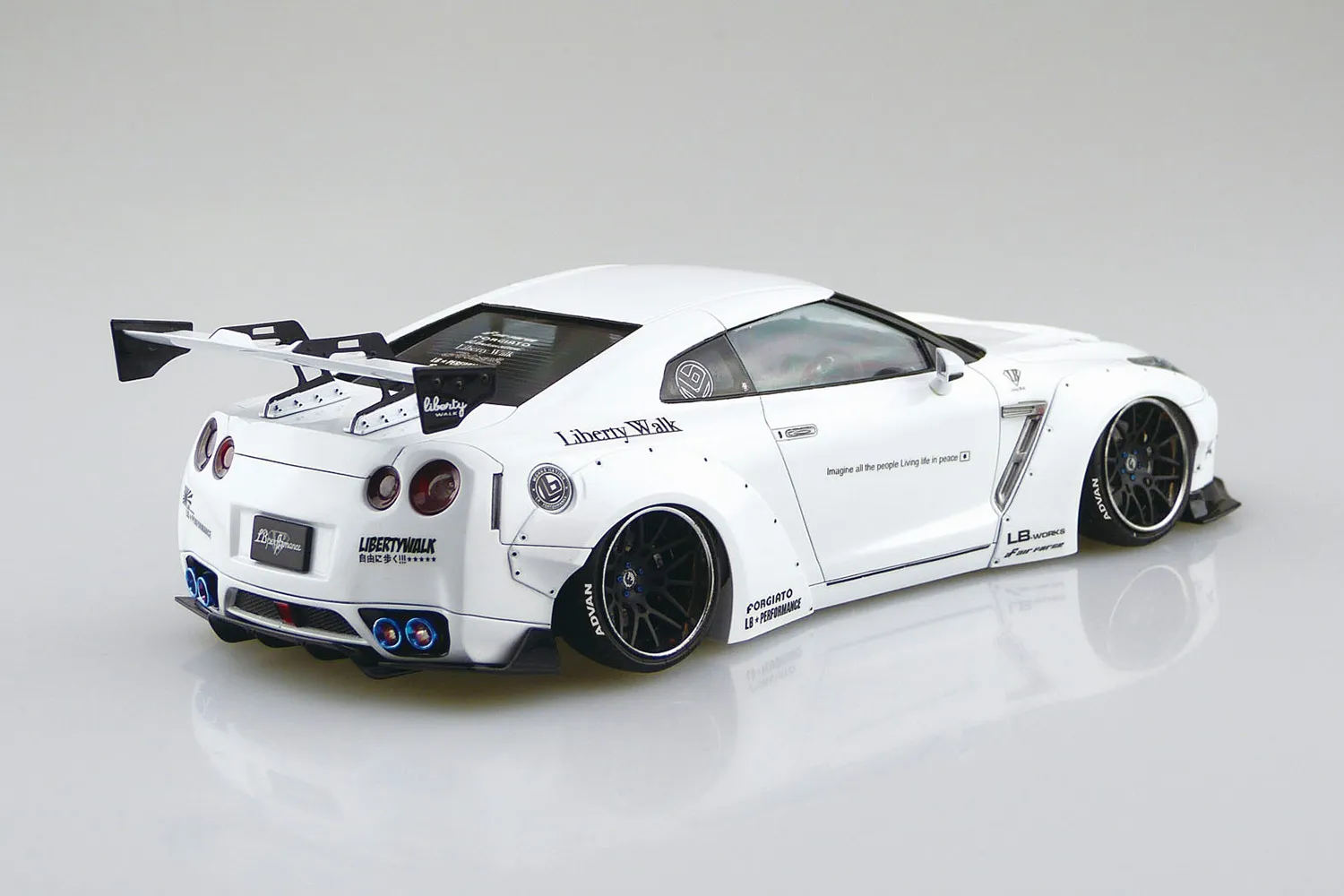 The latest Liberty Walk dazzler is heading to fans' hands thanks to Aoshima! From its eye-grabbing custom details to its 20-inch Forgiato Maglia wheels, the 1/24 LB Works R35 GT-R Type 1.5 is every inch a gotta-get. Includes a front bumper set, front diffuser, bonnet hood, tail lamp, and much more!
