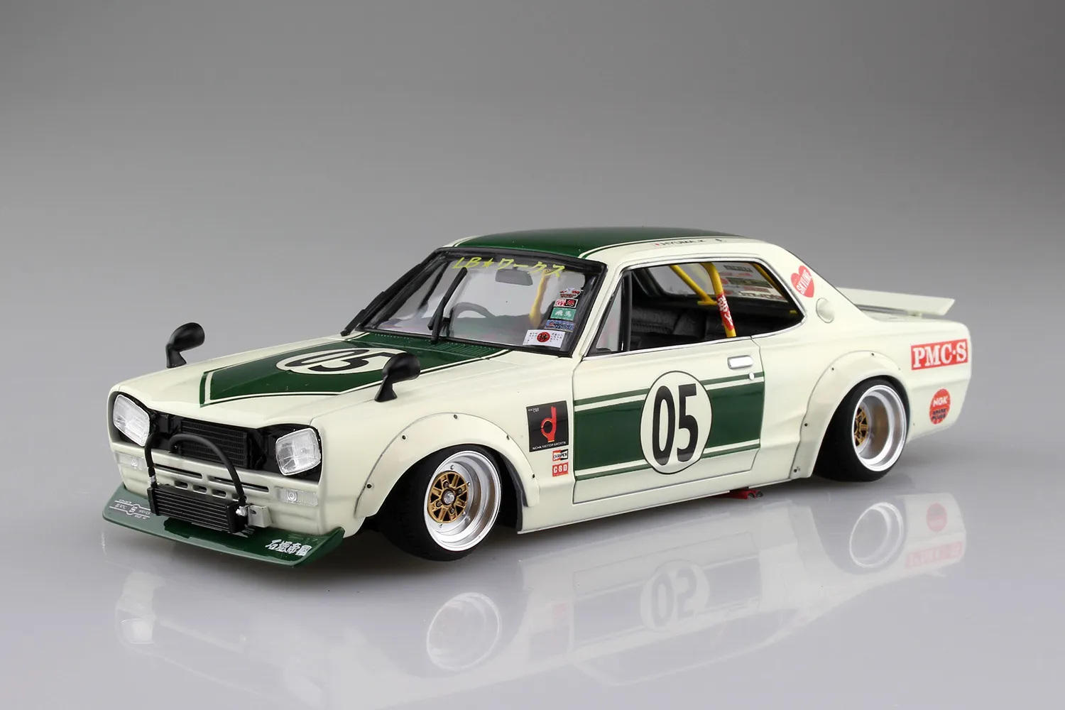 SKU: A005757 | Brand: Aoshima | Product: Aoshima 1/24 Liberty Works Charasuka 2DR Plastic Model Kit This 1/24 scale Liberty Walk Charsuka 2-Door kit represents the second-generation Charaska, Hyuma Kato's vehicle of choice. Specialized components include Shakotan Koyaji over-fenders for front and rear, frameless tail lamp housings (paired left and right), rear bumper mounting brackets (paired left and right), and lateral reinforcement tubes. The assembly incorporates a grille-free intake treatment, oil cooling system, front chin spoiler, pillar air intakes, 14-inch MK-III forged wheels, LB motorsport tires with pulled tread pattern, and roll cage structure. Adhesive must be purchased separately for assembly.