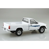 This 1/24-scale model kit of a street custom-style Toyota LN106 Hilux Longbed truck from Aoshima features a U.S.-style stock exterior; a step bumper is included, as are decals for the Genuine-style graphics, license plate frame, bumper stickers and more. Includes - Decals
