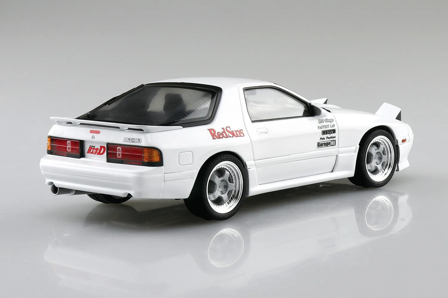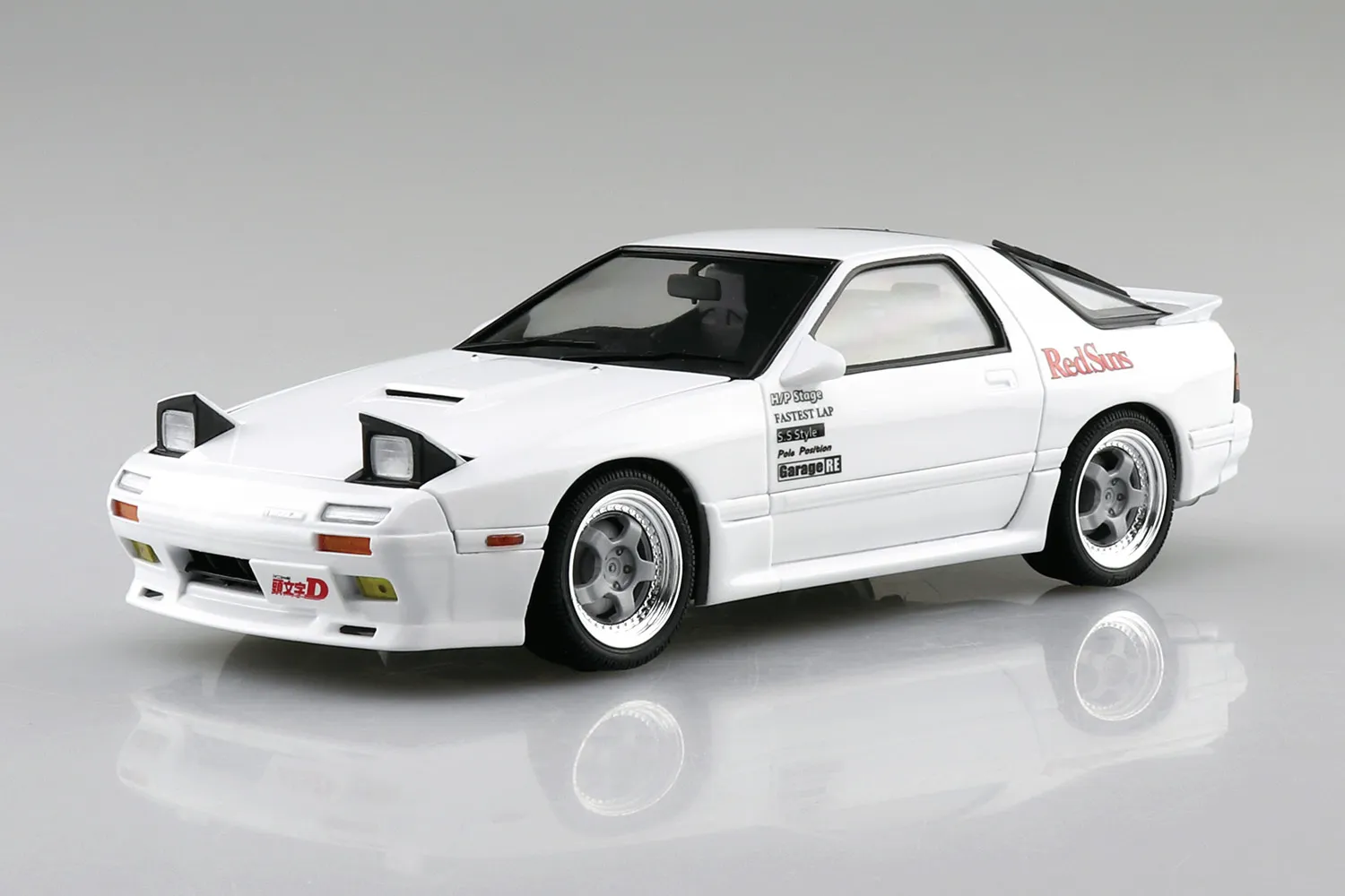 The FC3S RX-7 driven by Ryosuke Takahashi in "Initial D," also known as "Akagi's White Comet," that went up against Takumi's Hachirokuy on Mt. Akina, is now a model kit from Aoshima! Includes - Exclusive front bumper - Aero mirror - Muffler - Aluminum foil - Window frame masking sticker