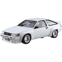 This 1/24-scale model kit of the AE86 1983 Toyota Corolla Levin N2 specification includes TRD over fenders! Features - Front spoiler - Rear spoiler - Muffler - Roll bar - Front and rear over fenders - External aluminum wheels - Bucket seats - Masking stickers for painting window frames are included.