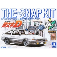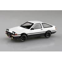 SKU: A006469 | Brand: Aoshima | Product: Aoshima 1/32 Initial-D Takumi's AE86 Plastic Model Kit This 1/32 SNAP kit features Takumi Fujiwara's AE86 from the manga series "Initial D". The 41-piece set includes custom components: 15-inch 8-spoke wheels with matching tyres, a sport-tuned steering wheel, beverage holder, and performance muffler. Retractable headlights can be adjusted between open and closed positions, and a lowered variant can be assembled from included parts. Pre-coloured plastic eliminates painting, and snap-fit assembly requires no glue. Dimensions are 12.7 x 15.24 x 5.08 cm. *Actual product may vary. *Tyres may have restricted rotation when assembled in lowered configuration.