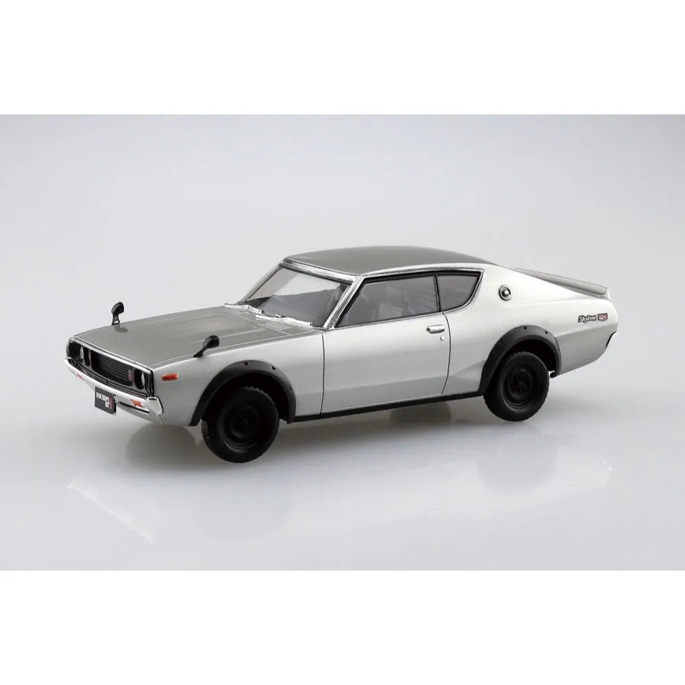 SKU: A006464 | Brand: Aoshima | Product: Aoshima 1/32 Nissan C110 Skyline GT-R (Silver) Plastic Model Kit This 1/32 SNAP model kit from Aoshima captures the second-generation Skyline GT-R, known as the "Kenmeri GT-R," in silver. The 25-piece assembly includes selectable parts for building a lowered version. Measuring 24.5 x 17.5 x 6.6 cm and weighing 200g, the model features pre-coloured plastic with a glossy finish—no painting required. Snap-fit construction means no adhesive is needed. The 1/32 scale and straightforward design provide an economical option.