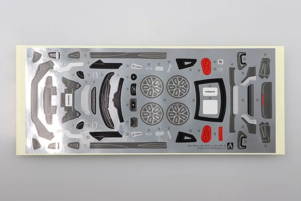 SKU: A005641 | Brand: Aoshima | Product: Aoshima 1/32 Nissan GT-R (Ultimate Metal Silver) This 1/32 scale plastic model kit depicts the Nissan GT-R in Ultimate Metal Silver finish. Assembly is required; paints and adhesive are not included.