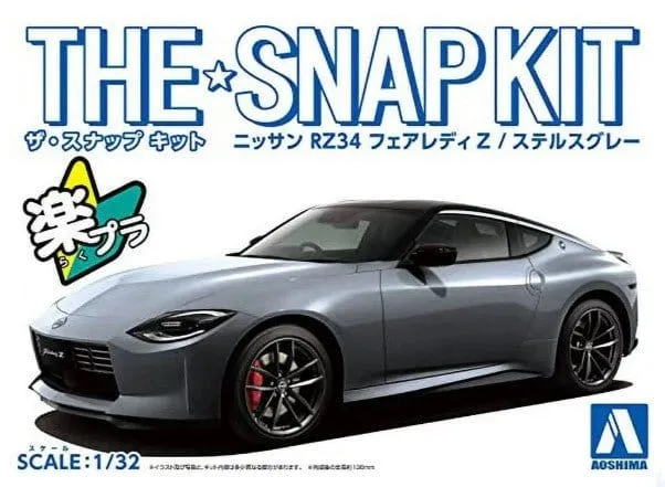 SKU: A006503 | Brand: Aoshima | Product: Aoshima 1/32 Nissan RZ34 Fairlady Z (Stealth Gray) Plastic Model Kit The Aoshima 1/32 Snap Nissan RZ34 Fairlady Z in Stealth Grey captures the final gasoline-powered iteration of the Z lineage. This marks the first plastic model release of the new Z, merging signature styling cues from prior Z generations into one cohesive design. Pre-coloured plastic achieves the body finish without painting, while the glossy coating enhances aesthetic quality. Snap-fit construction eliminates adhesive altogether. The simplified 23-piece assembly at 1/32 scale delivers affordability. An entirely new tooling base permits building a lowered suspension variant.
