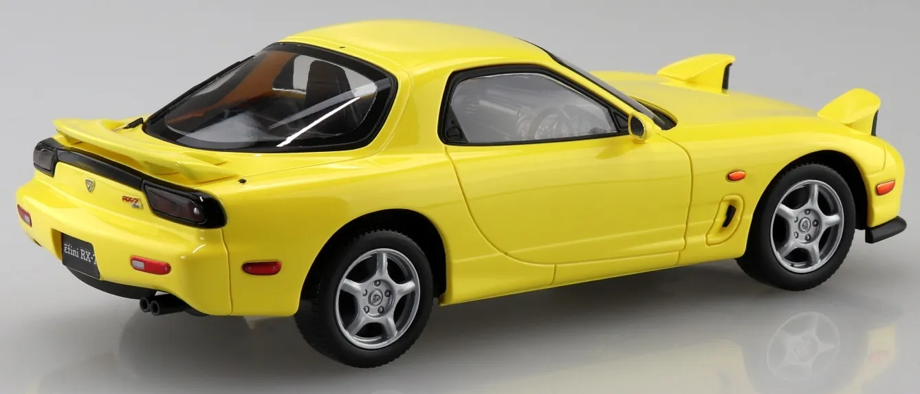 This is the Aoshima 1/32 SNAP Mazda FD3S RX-7 (Competition Yellow Mica) Model Kit 1/32 SNAP MAZDA FD3S RX-7 (Competition Yellow Mica) by Aoshima delivers fast and fun assembly for car enthusiasts and hobbyists who want a vibrant, display-ready model without using paint or glue. Featuring: - Snap-fit design: Parts click together easily for a simple, stress-free build. - Pre-coloured Competition Yellow Mica body: Ready to display straight from the box with striking colour. - Detailed trims: Clear windows, lights, and interior parts provide an authentic, realistic finish. Finished Model Dimensions (Approximate): - Length: 14.2 cm - Width: 5.6 cm - Height: 3.7 cm Technical Specifications: - Scale: 1:32 - Manufacturer: Aoshima - Model: Mazda FD3S RX-7 (Competition Yellow Mica) - Parts count: 27 - Material: Injection-moulded plastic - Assembly: Required - Paint/Glue: Not required - Recommended Age: 10+ Cars specifics: - Body: Coloured (Competition Yellow Mica) - Pre-coloured Parts: Yes - Posable Doors and Hood: No Perfect for: Beginners in model building, car lovers, and collectors who enjoy quick, display-ready projects. Why this kit matters The Mazda FD3S RX-7 is a celebrated Japanese sports car, renowned for its rotary engine, lightweight design, and exceptional handling. First launched in the early 1990s, the RX-7 became a favourite on the track and in tuner culture, with its sleek, aerodynamic design and performance capabilities capturing the hearts of car enthusiasts worldwide. Aoshima’s 1/32 scale snap kit faithfully reproduces the FD3S RX-7 in vivid Competition Yellow Mica. The kit’s pre-coloured parts and simple snap-fit construction make it accessible to both younger builders and experienced collectors, offering a satisfying building experience without the need for paint or glue. How to use it Arrange the sprues and follow the step-by-step instructions. Simply snap the parts together to assemble the model — no paint or glue is required. Once completed, display your Mazda FD3S RX-7 on a shelf or in a collection to showcase its striking colour and iconic design. Gift Suggestion This kit is ideal as a gift For Kids (10+) thanks to its easy snap-fit assembly and pre-coloured parts. It is also a great gift For Him if he enjoys cars or wants a quick, impressive project to display proudly. This is a plastic model kit. Assembly is required. Paint and glue are not required.