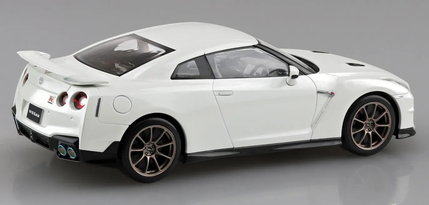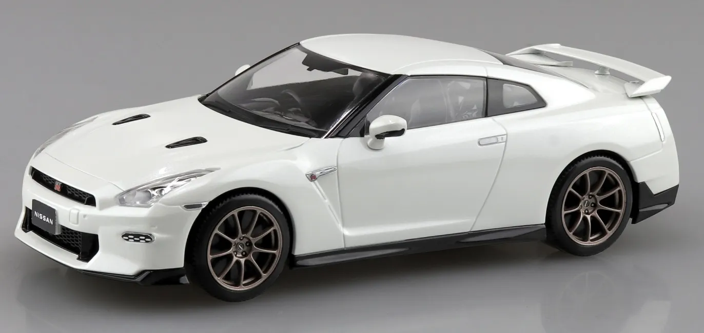 This is the Aoshima 1/32 Snap Nissan R35 Nissan GT-R 2024 (Brilliant White Pearl) Plastic Model Kit The Nissan GT-R is a high-performance sports car and grand tourer produced by Nissan that was unveiled in 2007.