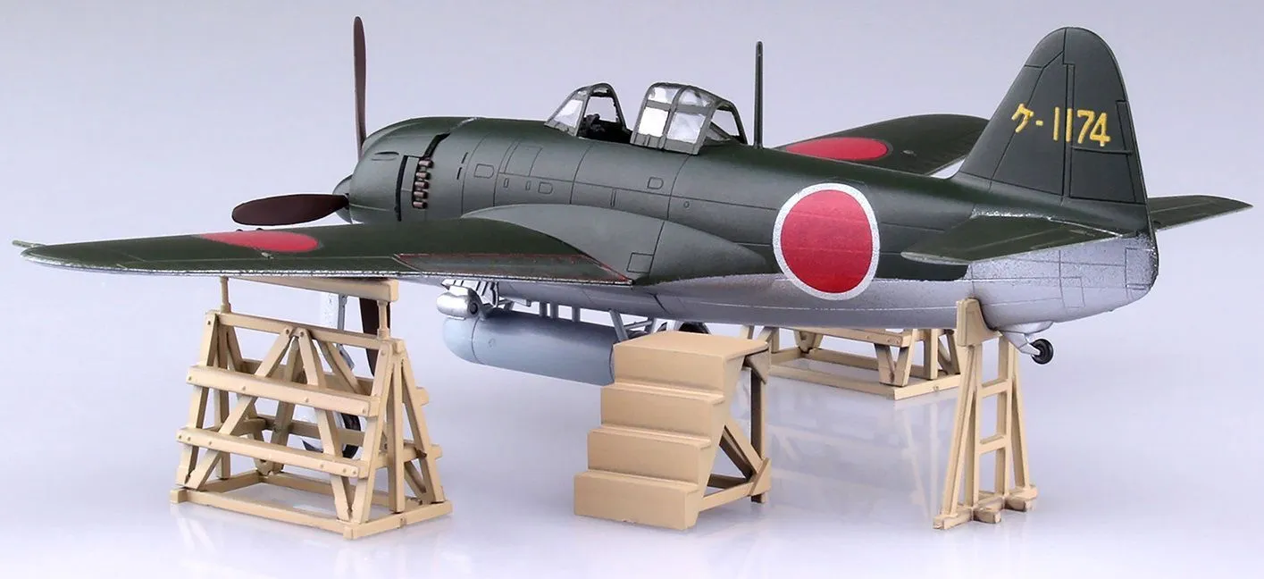 Features - Cockpit interior is recreated, pilot figure included - Reproduces the Shiden Type 11 B with machine guns housed inside the main wing - Comes with a suspension stand for the aircraft