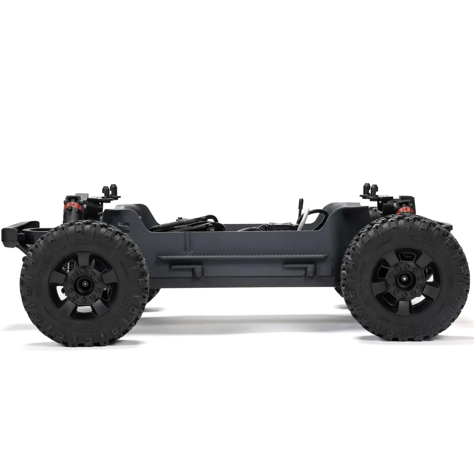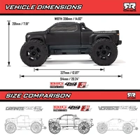 Factory assembled and installed, the heavy-duty, metal gear differentials send power from the Spektrum 3100Kv brushless motor to all four wheels for worry-free bashing on dirt, gravel, or short grass. The entire power system is well-protected and the all-terrain independent suspension and oil-filled shocks soak up bumps. Set up ramps or build some dirt mounds and launch your truck into the air! Extended height side guards on the strong composite chassis combine with the close-fitting body to keep dirt and debris out of the chassis tub. When maintenance is needed, the hidden clipless body retention system allows quick, easy chassis access.