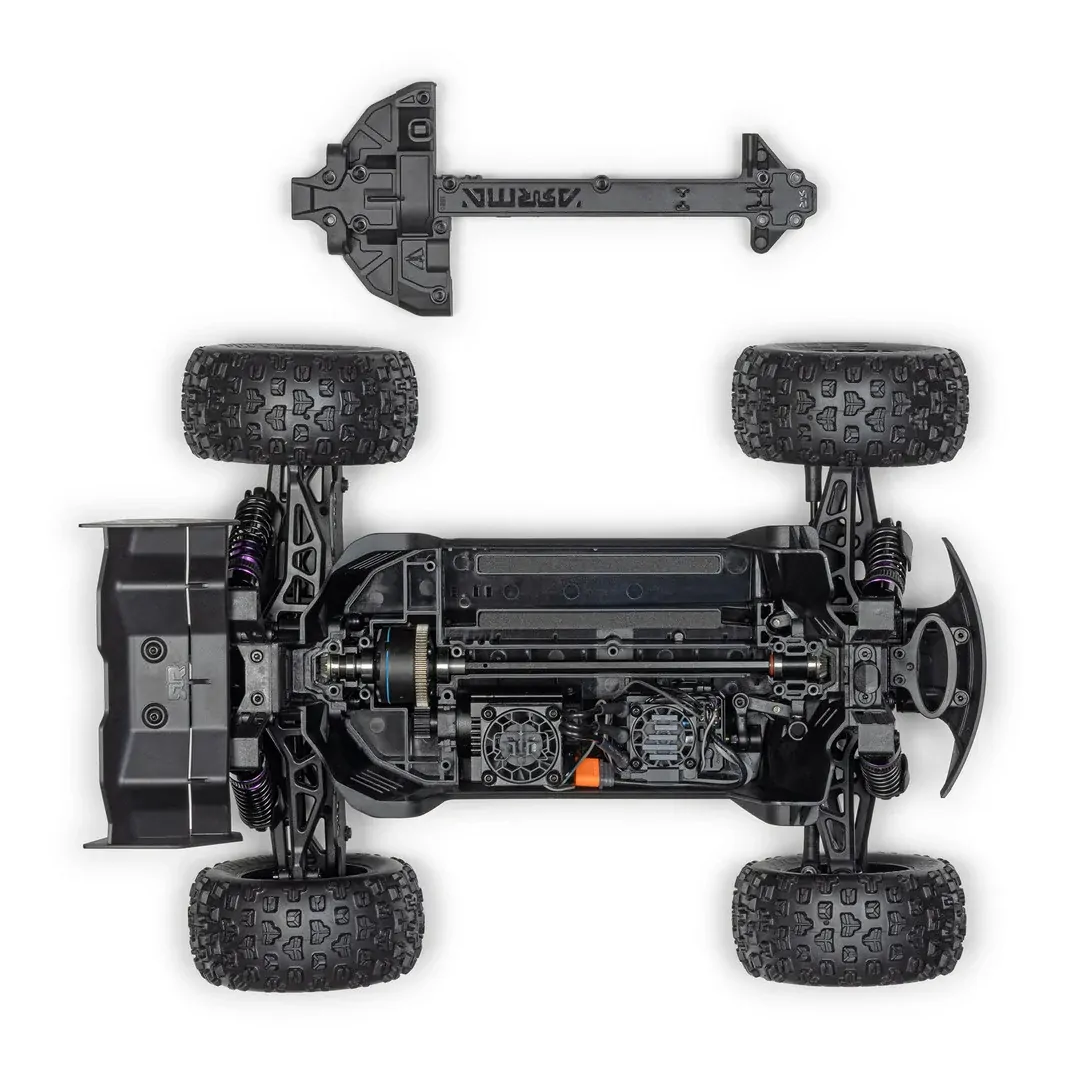 Its compact footprint hides a full arsenal of ARRMA strength. The mini chassis uses reinforced components and heavy-duty bumpers for the kind of durability that lets you go wild without thinking twice. The aggressive body comes in bold factory paint with a quick release clipless system for fast pit stops and even faster bragging rights.