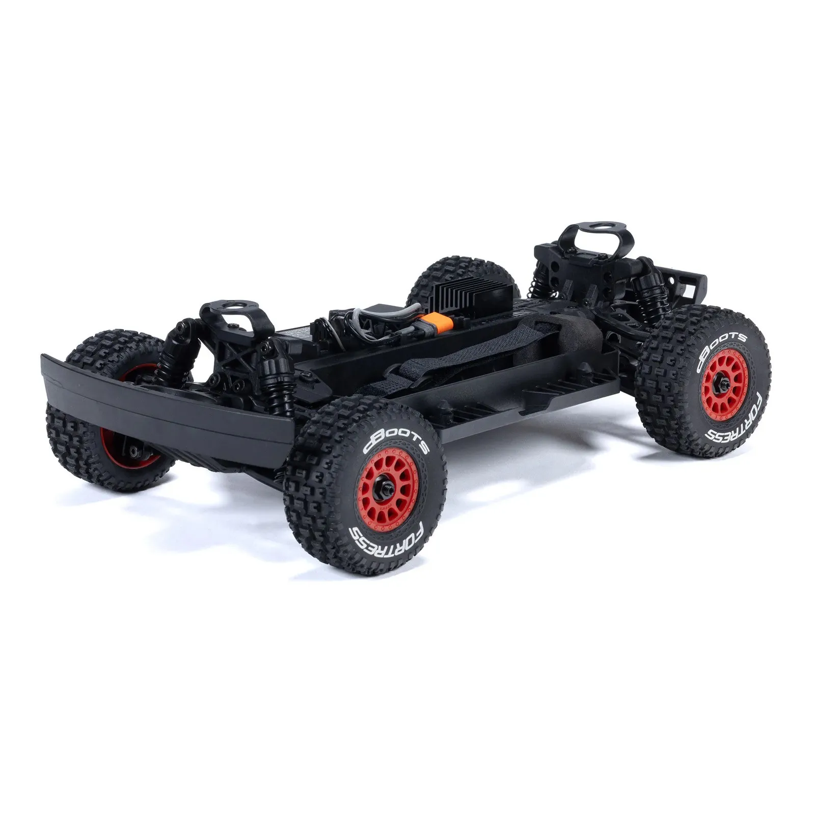 Out of the box, the desert truck body comes factory-finished in two exciting color scheme options. It captures the unmistakable looks and form of the original MOJAVE in small scale size. The dBoots Fortress tires add all-terrain traction and are mounted on tough color-coordinated wheels.