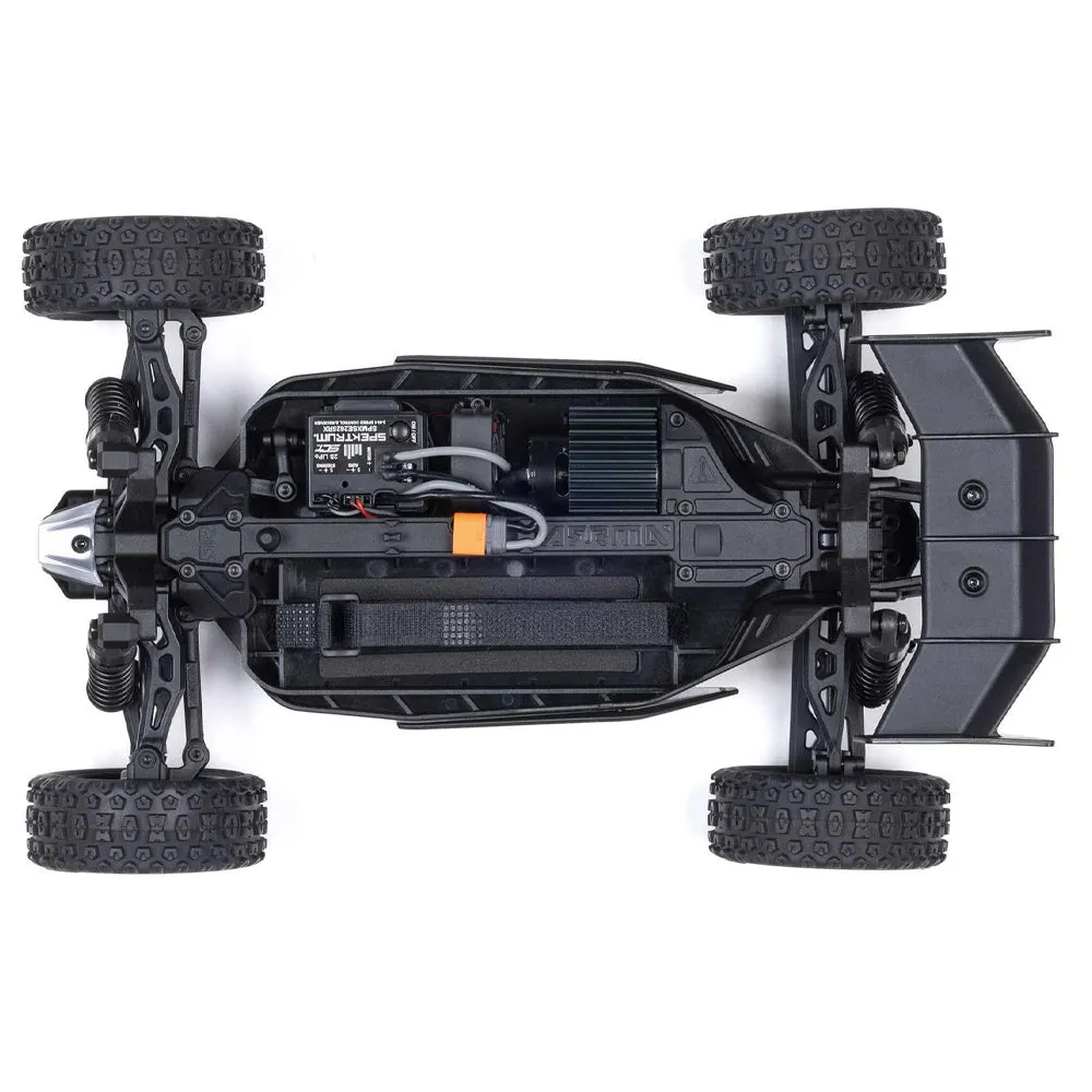 The high-quality Spektrum SLT2 2-channel transmitter is the perfect size for all drivers. It can help you learn control skills safely by limiting the buggy’s maximum speed to 50% or 75% until you’re ready for it all. Four AA batteries included.