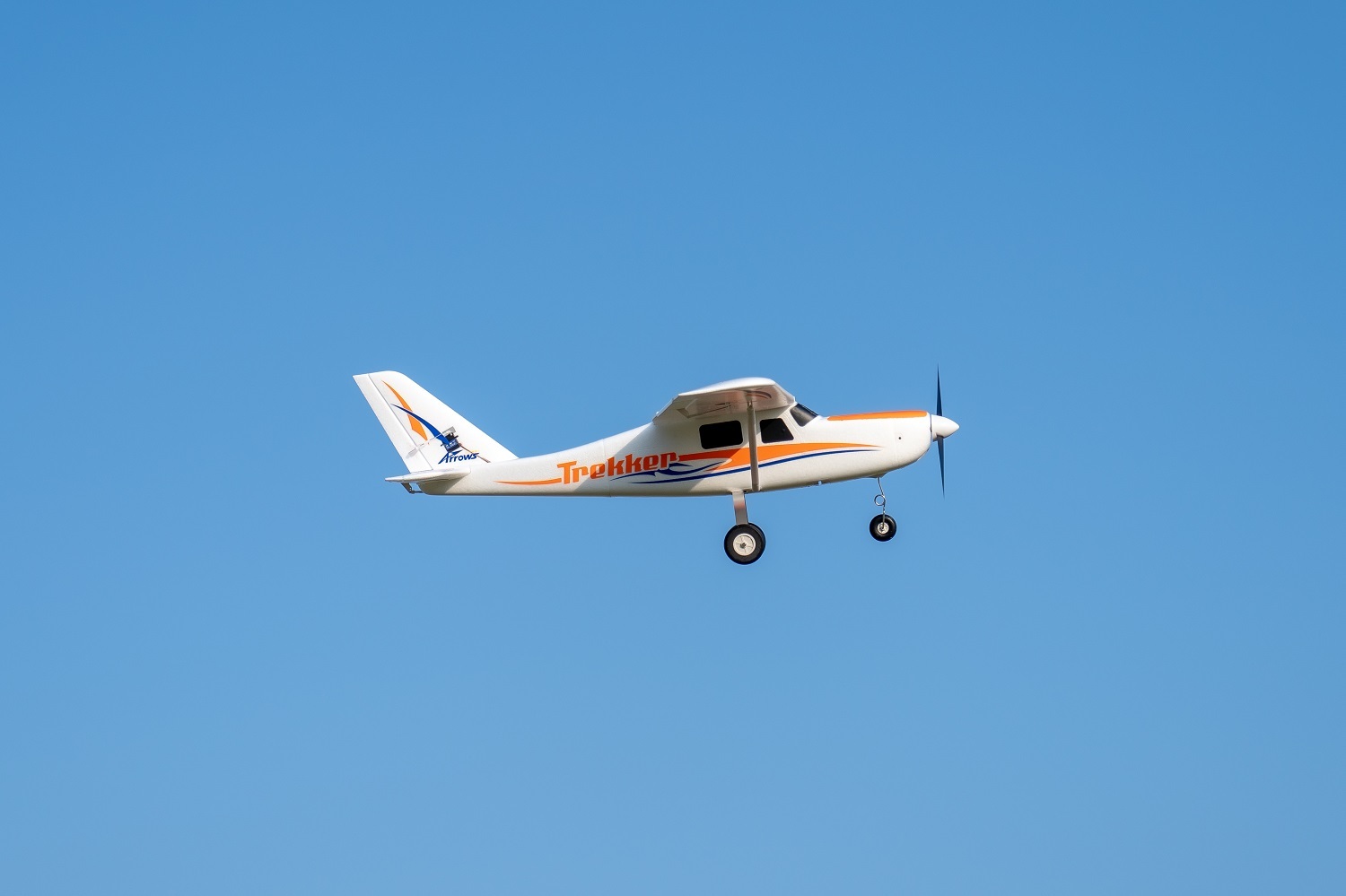 Built with ultralight EPO foam, the large wing area, high-winged airframe configuration gives the Trekker low wing-loading and extraordinary amounts of lift, even at slow speeds. The use of the tricycle-geared layout helps to have a better rolling directionality. The main landing gear is made of durable aluminum plates, with large spans on both sides and flat arcs, which can effectively absorb the impact of heavy landing. Furthermore, optional floats add to the all-terrain fun of the Trekker.