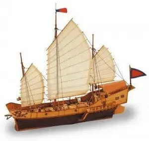 SKU: ART-18020 | Brand: Artesania Latina | Product: Artesania 1/60 Red Dragon Wooden Ship Model [18020] Construct a 1:60 scale wooden model of the Red Dragon, a traditional Chinese junk with over two millennia of maritime history. The kit includes all necessary components to assemble this distinctive vessel, which features a hull without a keel and a characteristic short stern. Originally documented around 600 BC, junks were employed for both military and commercial purposes throughout Southeast Asia and were notably used during 13th-century attempts to conquer Japan. Their sails incorporated thick fabric reinforced with reeds, offering exceptional stability and propulsion efficiency, and earned recognition among maritime historians as one of the most effective naval designs.
