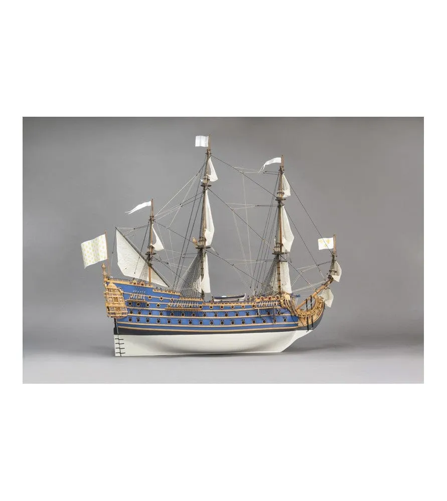 The new wooden ship model kit of the French warship Soleil Royal at 1/72 scale contains one of the scale models to build most detailed on the market. This faithful replica of the ship in line of the King of France Louis XIV has a large number of decorative details both on the stern and on the bow, as well as throughout the entire deck. Artesania Latina modelers have followed all the available and more precise information for the design and creation of this marvel of naval modeling.